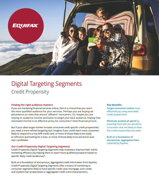 Credit Propensity Digital Targeting Segments help marketers improve their online marketing efficiency by helping them to reach more qualified prospects based on specific likely credit tendencies.